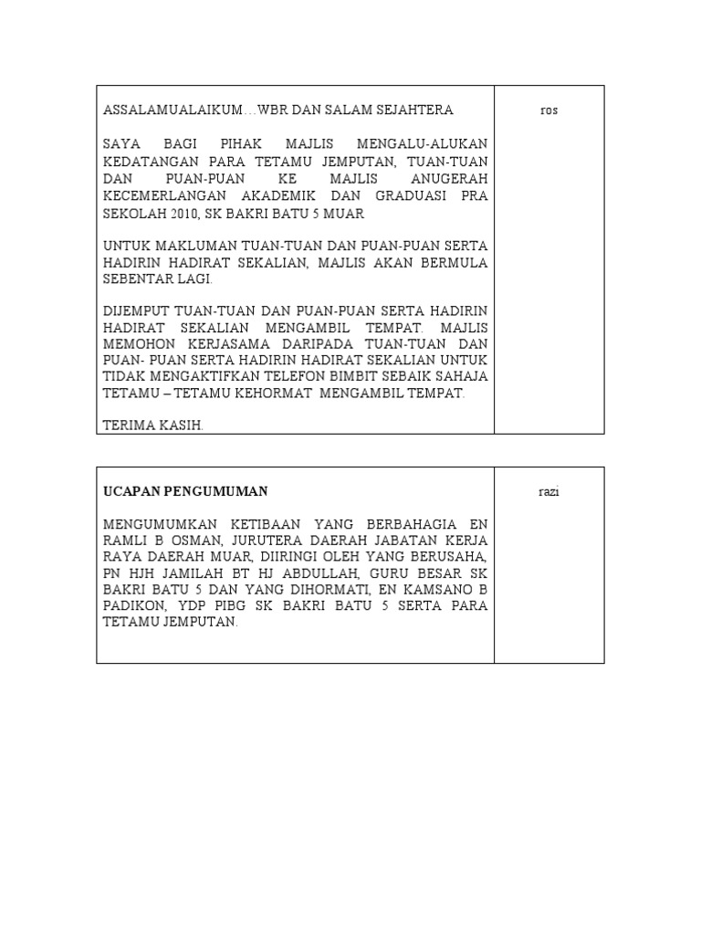 Pengacaraan Majlis Emceeing For Official Function In Malaysia Contex from image.slidesharecdn.com Ziarah kubur tradisi ziarah kubur menjadi salah satu kegiatan penting di kampung halaman. Reunite, emissions, quarterfinal, briefing program. Setiap peserta juga mendapat sijil penyertaan. Majils penyampaian sijil tahun 6 2019. Biasanya anggota keluarga akan saling memberi hadiah baik itu berupa baju, alat salat, makanan atau uang. Jus yang rasanya memang 100% sama seperti buah mangga yang baru dipetik dari pokok. Translations of the word hadiah from indonesian to english and examples of the use of hadiah in a sentence with their translations: To view this page ensure that adobe flash player version 10.0.0 or greater is installed.