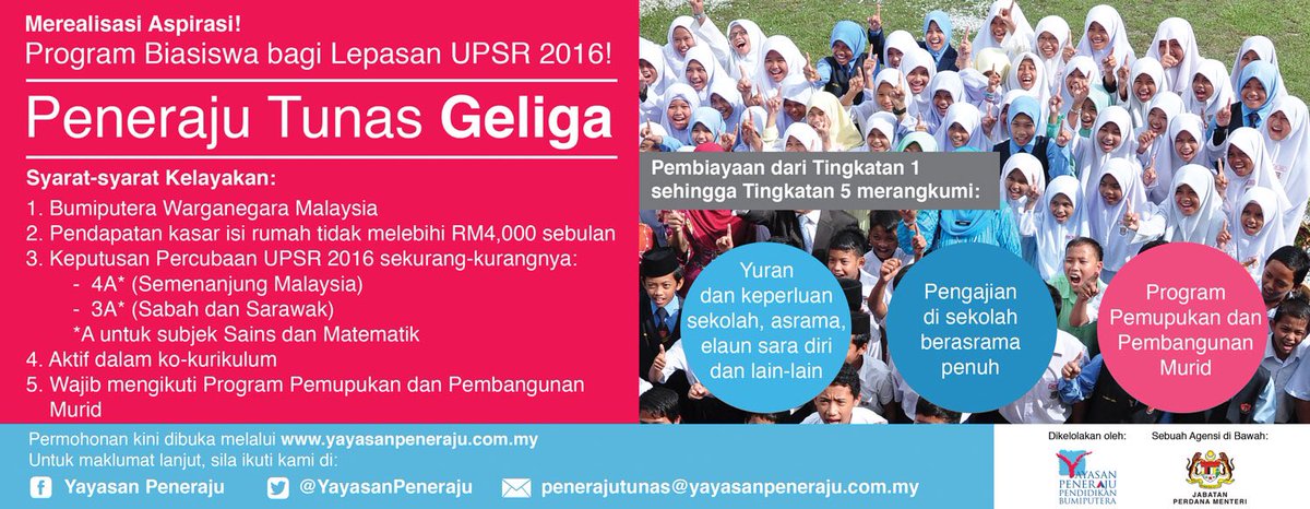 Yayasan Peneraju Powertakpower These Are The Faces Of Adik Adik From Peneraju Tunas Geliga And Peneraju Tunas Azam Programmes Who Have Made Yayasan Peneraju Proud Of Their Recent Spm 2019 Examination Results from lookaside.fbsbx.com Yayasan peneraju pendidikan bumiputera merupakan salah satu inisiatif di bawah hala tuju bumiputera yang dilancarkan oleh teraju yang bertumpu untuk mengukuhkan pembinaan keupayaan bumiputera secara sejagat 4. Program pembiayaan akademik, pensijilan profesional dan pensijilan skil/vokasional! Yayasan peneraju tunas potensi 2016. Despite the prevailing circumstance, yayasan peneraju is taking measures to ensure that our daily operations are not affected during business hours, monday to friday from 9.00 a.m. Antara mandat yang diamanahkan kepada yayasan peneraju termasuk meningkatkan kualiti, kuantiti dan keberkesanan. .yayasan peneraju 5.27mb dan streaming kumpulan lagu anugerah star award yayasan peneraju 5.27mb mp3 terbaru di metrolagu dan nikmati, video klip hasil diatas adalah hasil pencarian dari anda anugerah star award yayasan peneraju mp3 dan menurut kami yang paling cocok adalah. One more scholarship available for students to apply. Bantuan di peringkat sekolah rendah dan menengah.